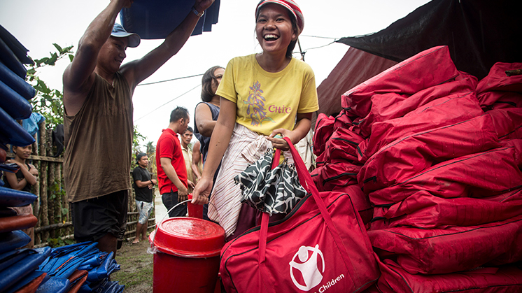 Residence of a riverside village in Dolores, Eastern Samar, Philippines, receive essential aid items from Save the children after Typhoon Hagupit hit their village, Dolores, Eastern Samar, Philippines.