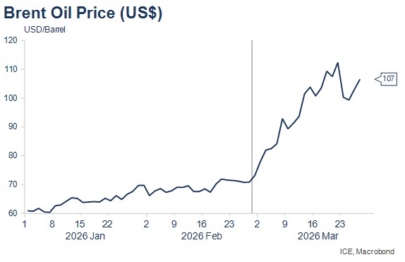 In the short-term, this appears to depend most crucially on how long the Strait of Hormuz remains closed and in the medium-term, the damage done to oil producing infrastructure in the region. While the Strait of Hormuz remains closed, I expect oil prices to continue to rise very sharply to recession-inducing levels well above US$150 per barrel. And while central banks are currently talking tough on interest rate increases, this scenario would likely ultimately constrain the upside for interest rates and bond yields, given the impact on activity and unemployment.